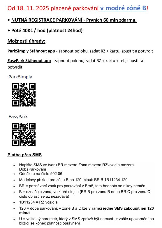 Informace a návod pro platbu parkovného najdete níže.